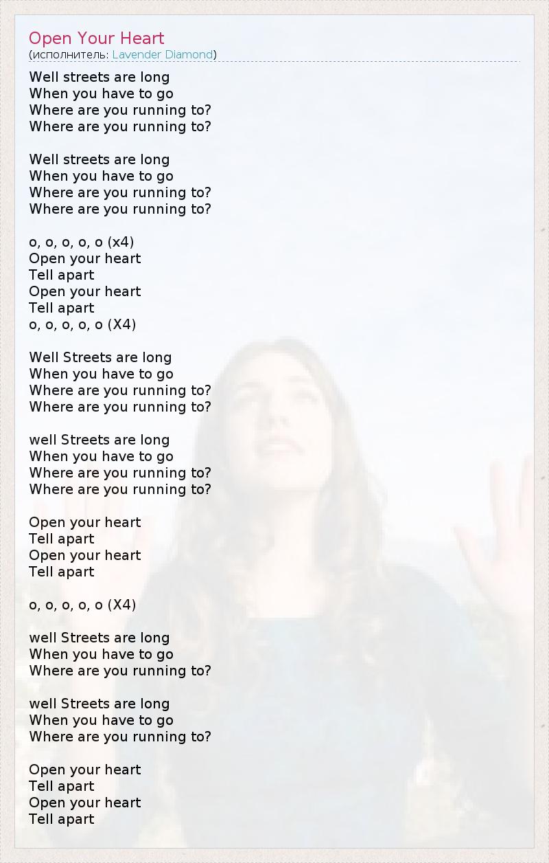 Well streets are long When you have to go Where are you running to? Where are you running to? Well streets are long When you have to go Where are you running to? Where are you running to? o, o, o, o, o (x4) Open your heart Tell apart Open your heart Tell apart o, o, o, o, o (X4) Well Streets are long When you have to go Where are you running to? Where are you running to? well Streets are long When you have to go Where are you running to? Where are you running to? Open your heart Tell apart Open your heart Tell apart o, o, o, o, o (X4) well Streets are long When you have to go Where are you running to? well Streets are long When you have to go Where are you running to? Open your heart Tell apart Open your heart Tell apart