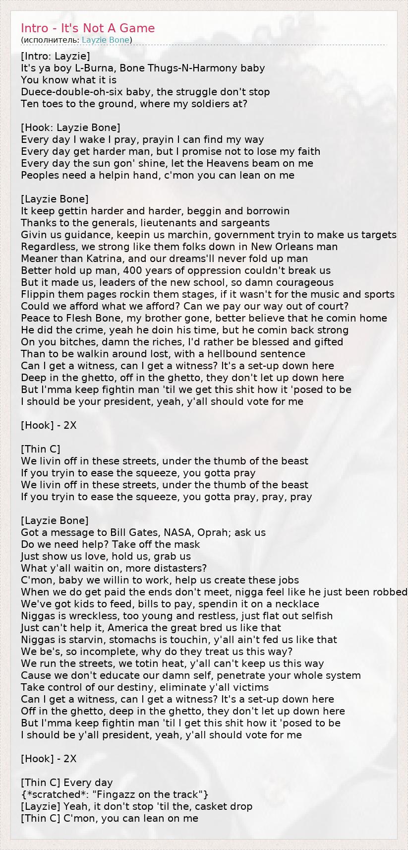 ГлавнаяИсполнителиLayzie BoneIntro - It's Not A Game