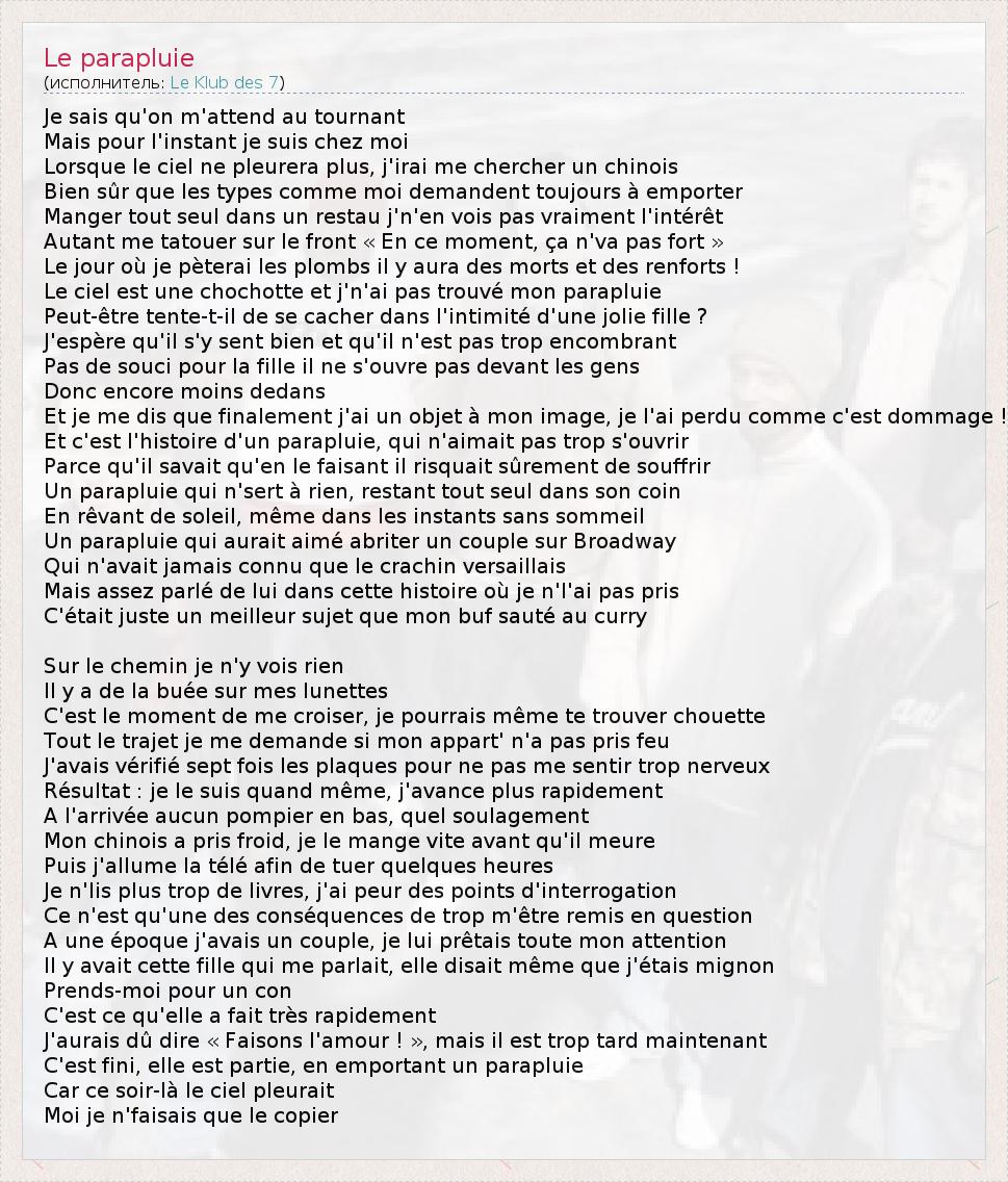 А как ты думаешь, о чем песня "Le parapluie" ?