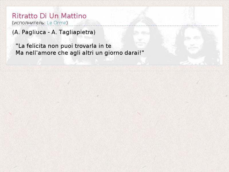 А как ты думаешь, о чем песня "Ritratto Di Un Mattino" ?