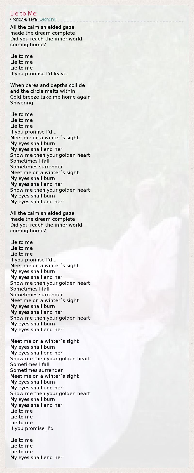 А как ты думаешь, о чем песня "Lie to Me" ?