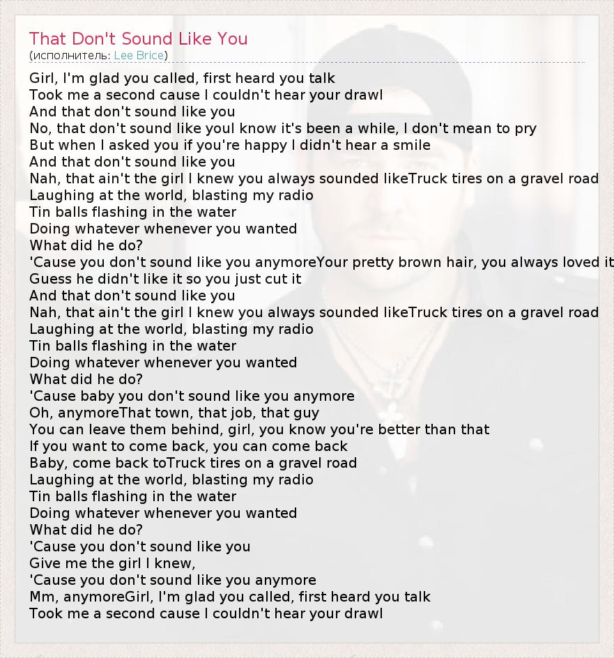 ГлавнаяИсполнителиLee BriceThat Don't Sound Like You