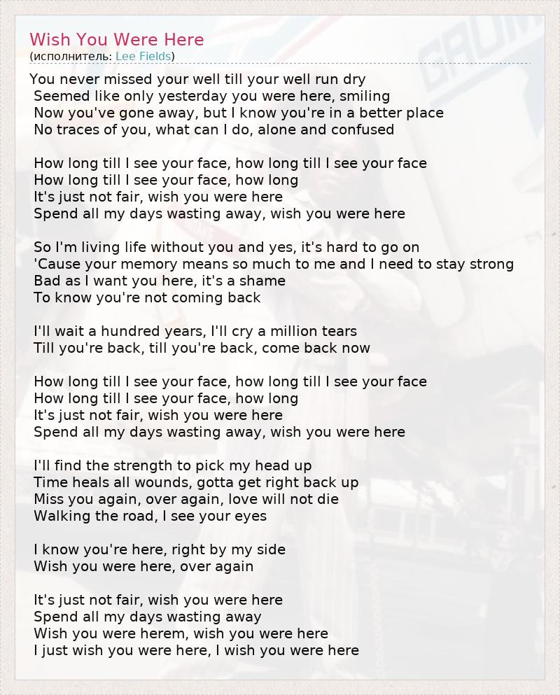 А как ты думаешь, о чем песня "Wish You Were Here" ?