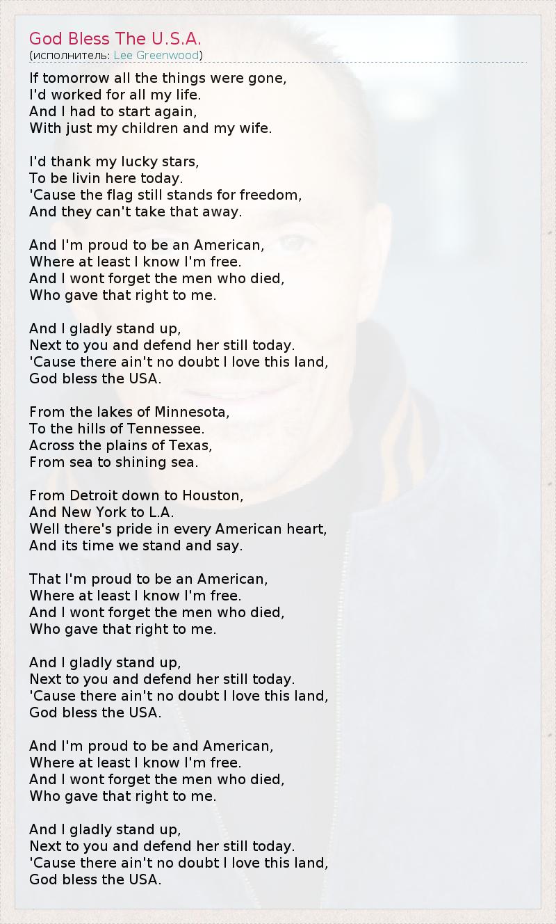А как ты думаешь, о чем песня "God Bless The U.S.A." ?