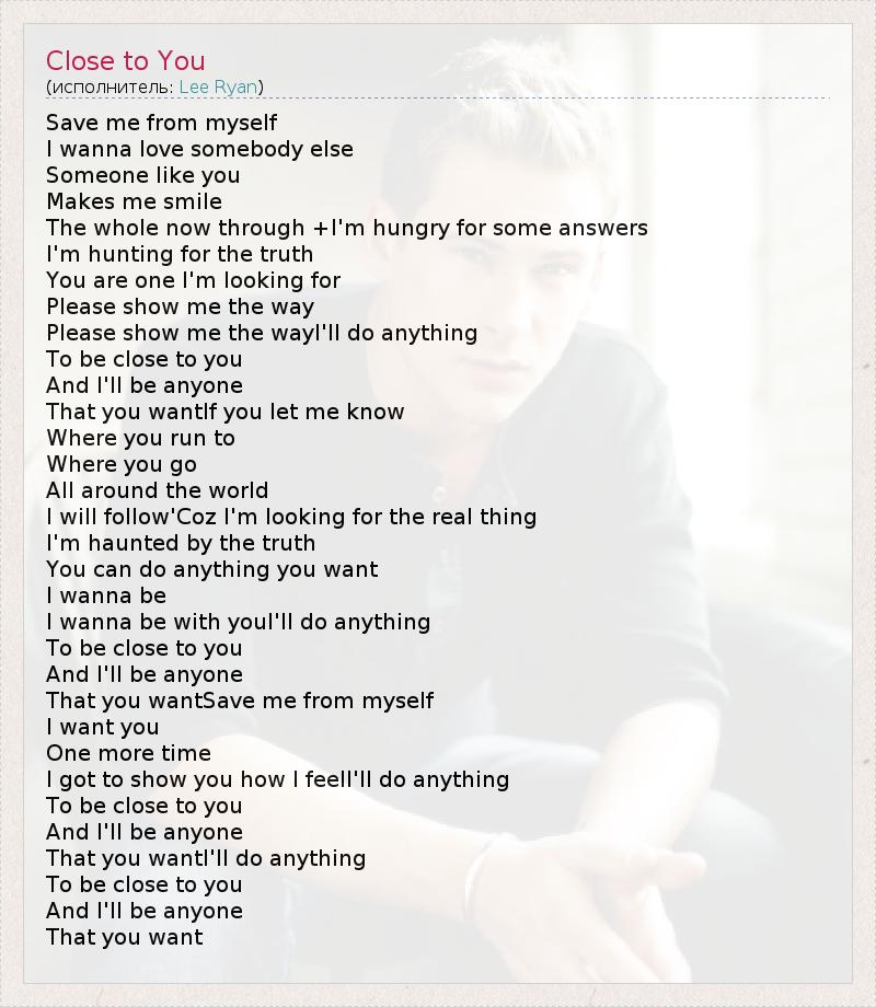 Это интересно:Ли Райан - английский музыкант, экс-участник группы Blue. Ушёл из группы в 2005 г., начав сольную карьеру. Он писал тексты для самых успешных песен Blue, таких как «Breathe easy». Дебютный сингл Ли "Army Of Lovers" занимал лидирующие места в хит-парадах. Вскоре Ли выпустил свой первый альбом с незамысловатым названием «Lee Ryan», в который вошли 12 песен. Альбом нельзя отнести к какому-то одному стилю - Ли смешивает... продолжение