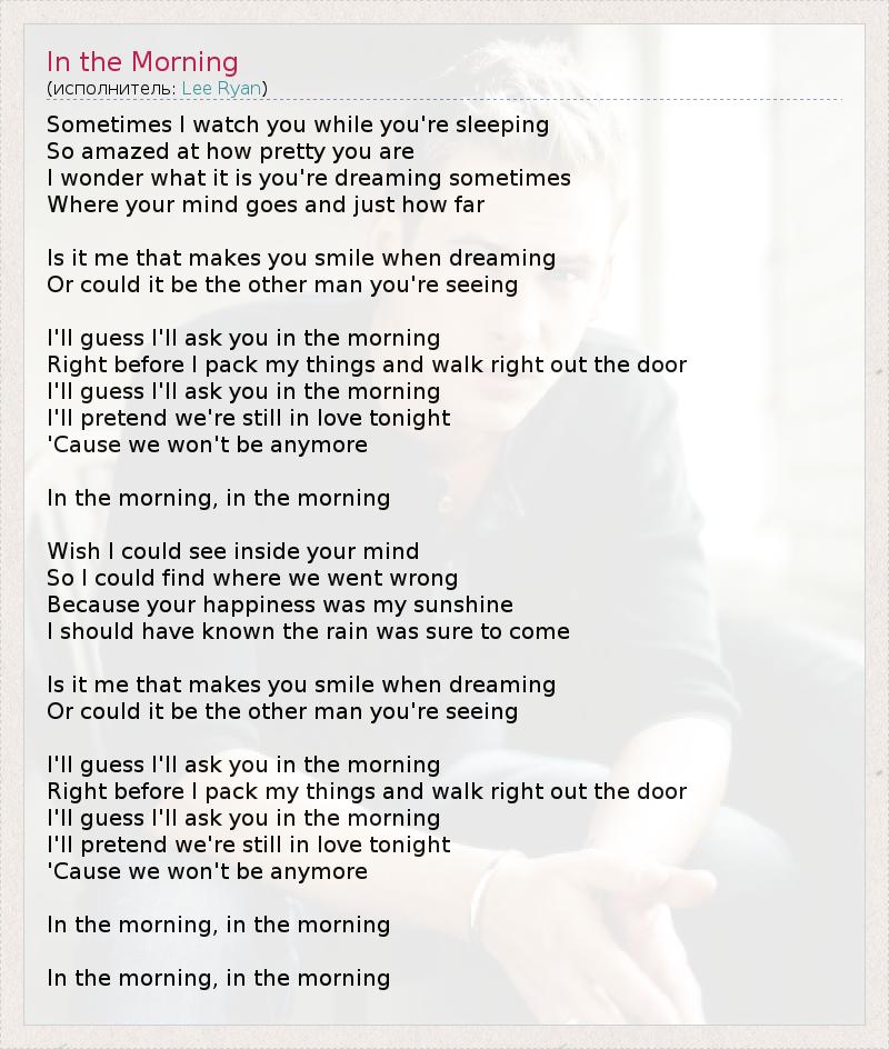 А как ты думаешь, о чем песня "In the Morning" ?