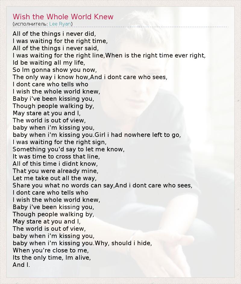 А как ты думаешь, о чем песня "Wish the Whole World Knew" ?
