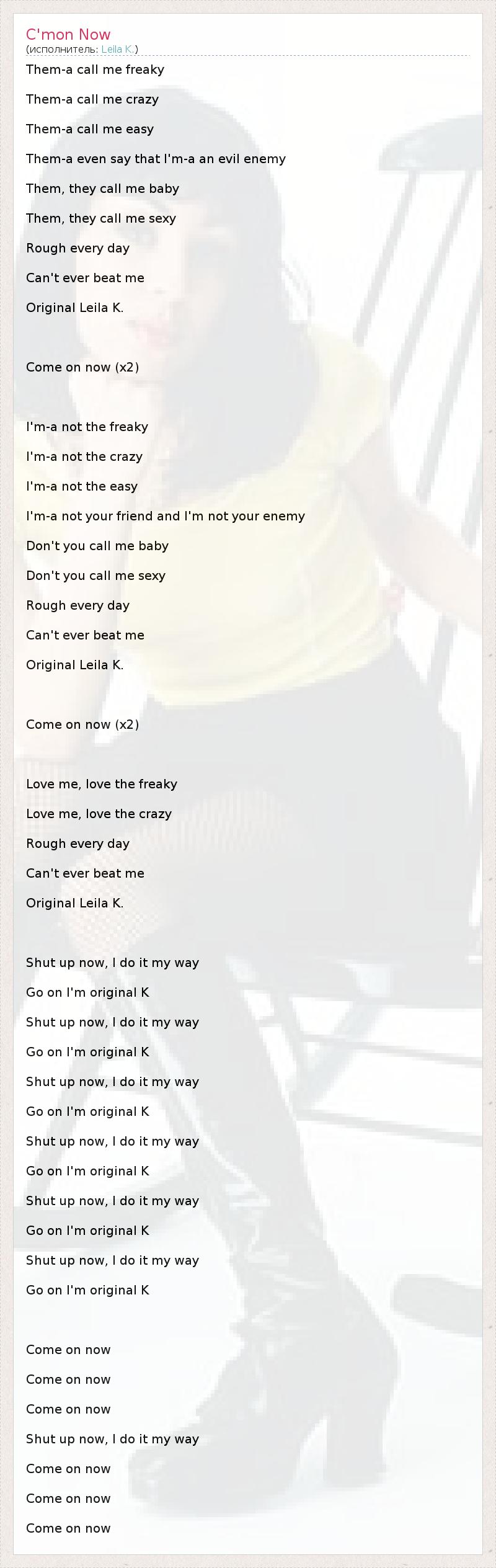 А как ты думаешь, о чем песня "C'mon Now" ?