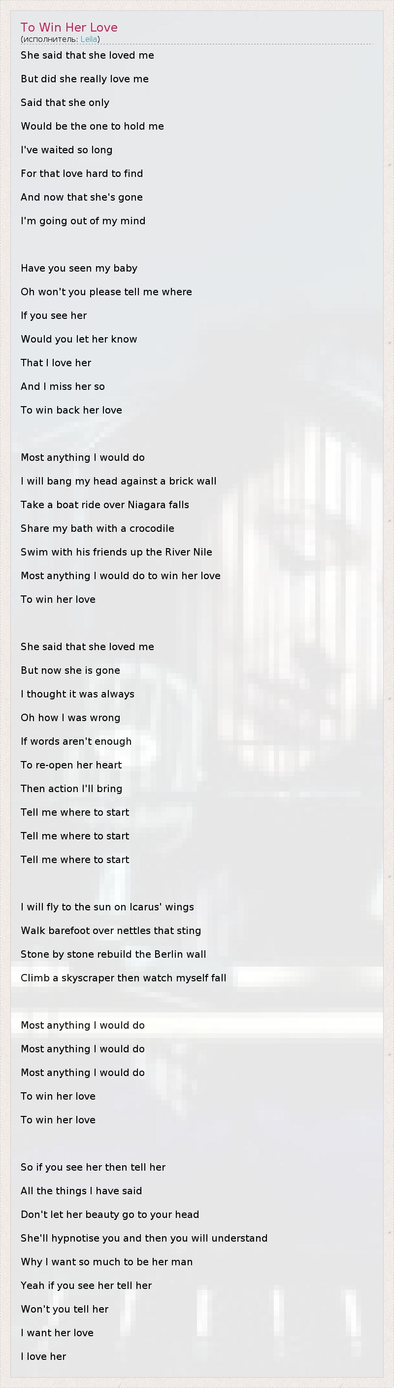 А как ты думаешь, о чем песня "To Win Her Love" ?