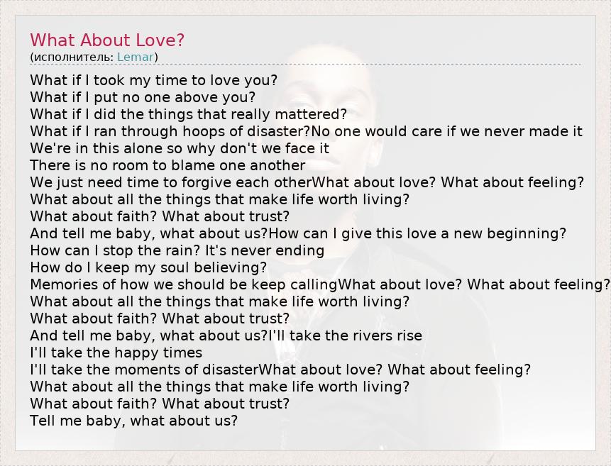 Memories of how we should be keep callingWhat about love? What about feeling?