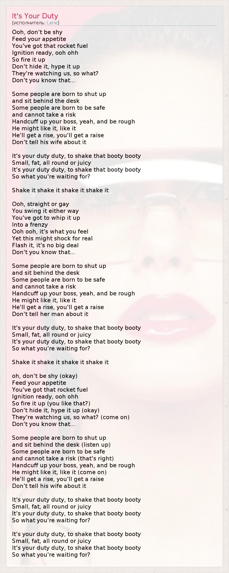 А как ты думаешь, о чем песня "It's Your Duty" ?