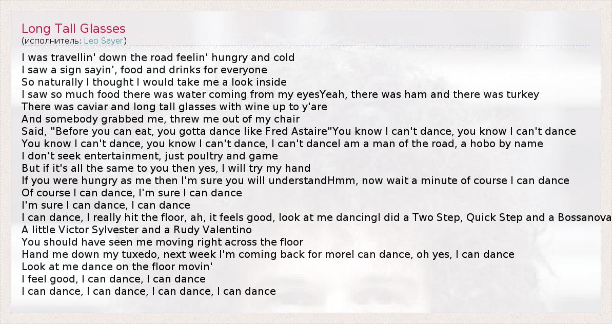 А как ты думаешь, о чем песня "Long Tall Glasses" ?