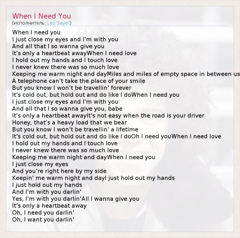 It's cold out, but hold out and do like I doOh I need youWhen I need love
