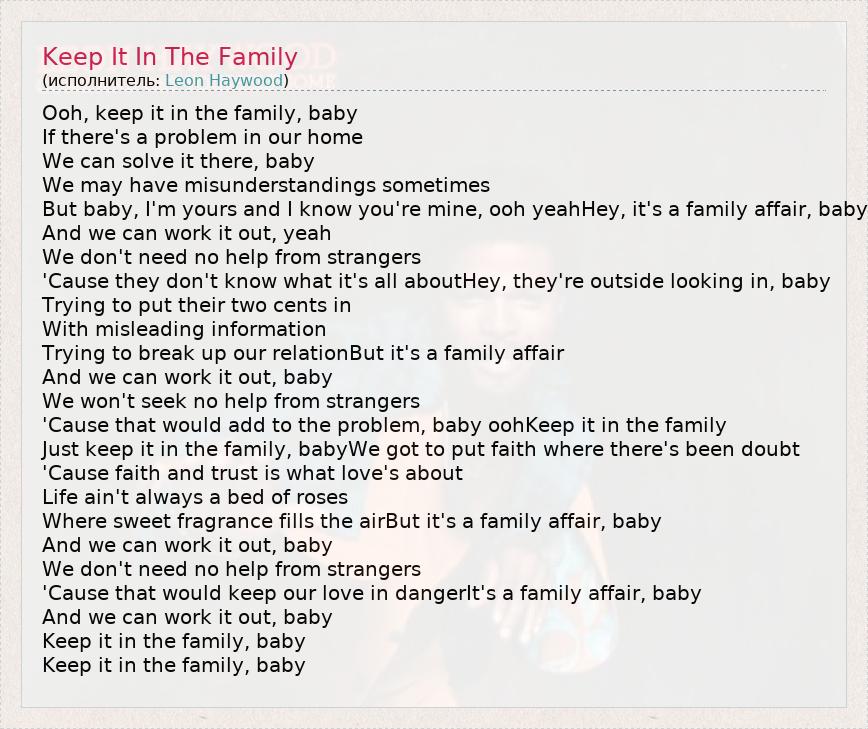А как ты думаешь, о чем песня "Keep It In The Family" ?