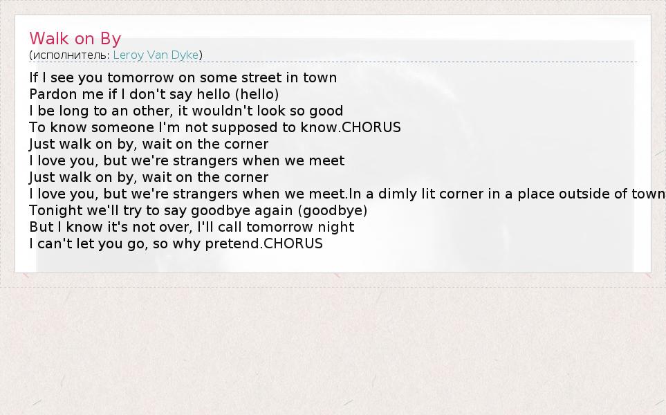 А как ты думаешь, о чем песня "Walk on By" ?