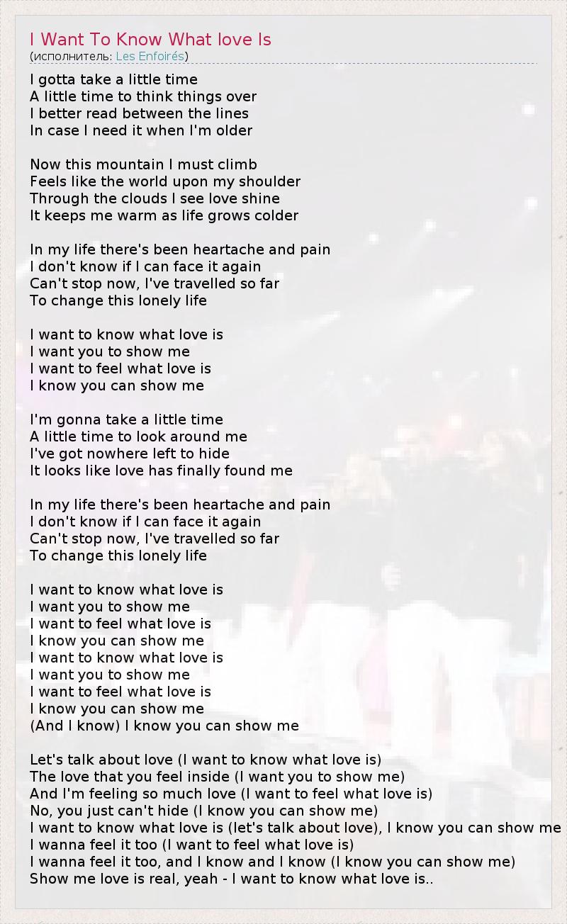 А как ты думаешь, о чем песня "I Want To Know What love Is" ?
