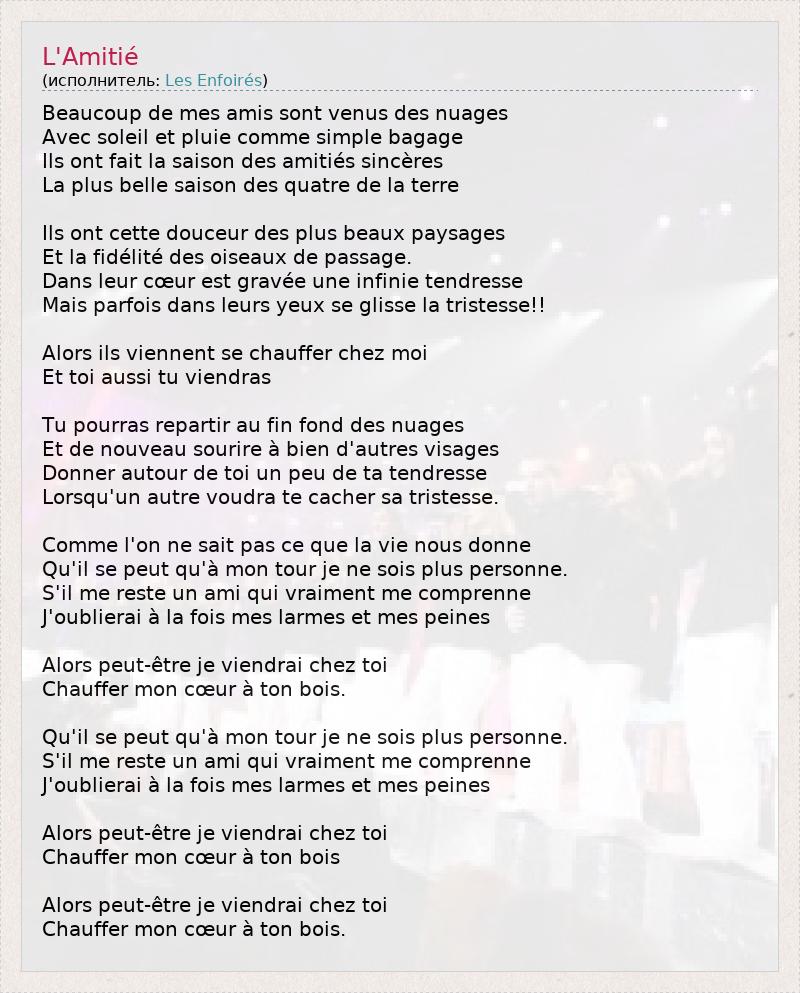 А как ты думаешь, о чем песня "L'Amitié" ?
