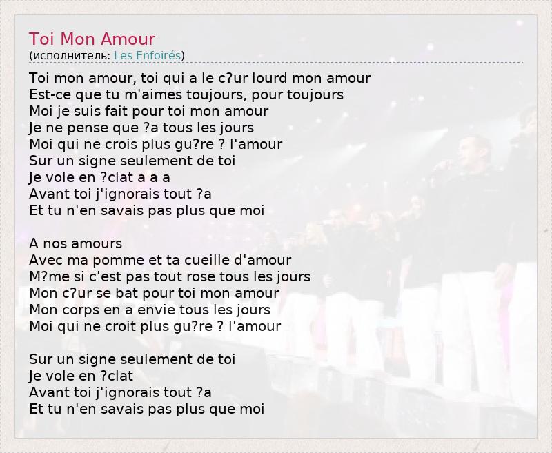 А как ты думаешь, о чем песня "Toi Mon Amour" ?