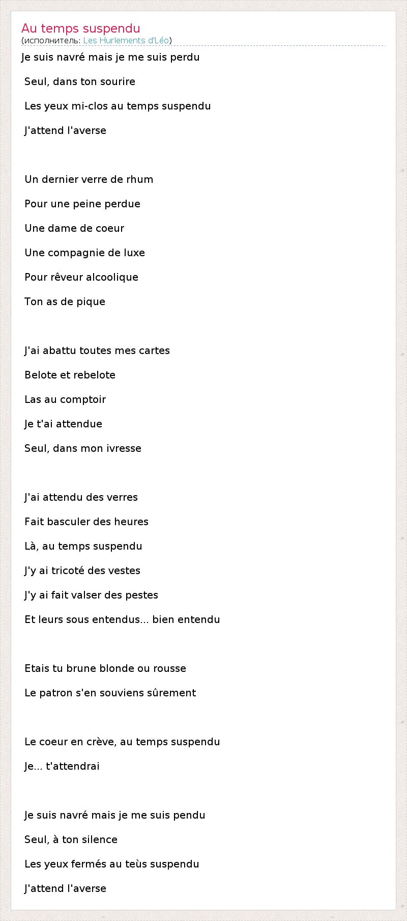А как ты думаешь, о чем песня "Au temps suspendu" ?