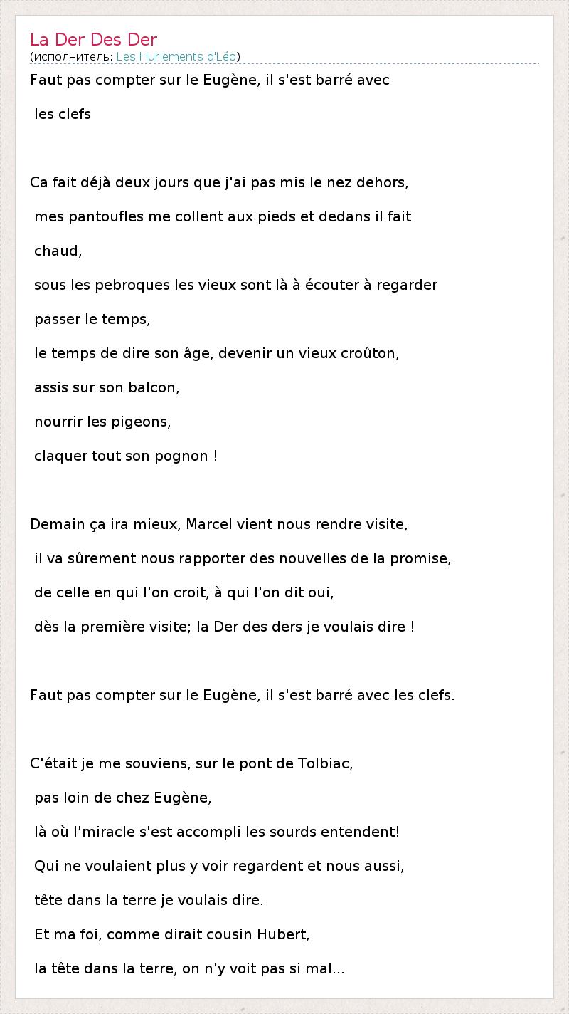 А как ты думаешь, о чем песня "La Der Des Der" ?