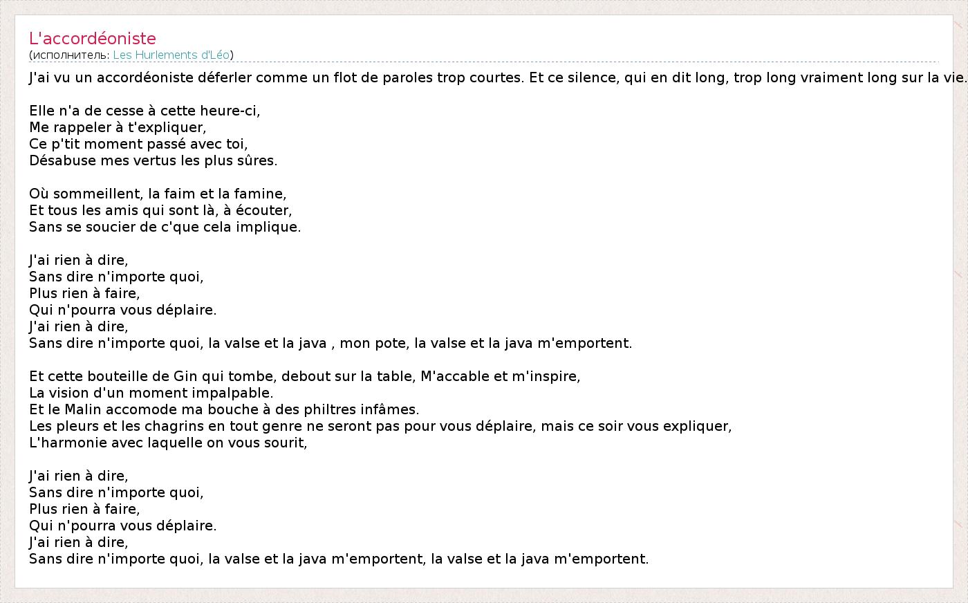 А как ты думаешь, о чем песня "L'accordéoniste" ?