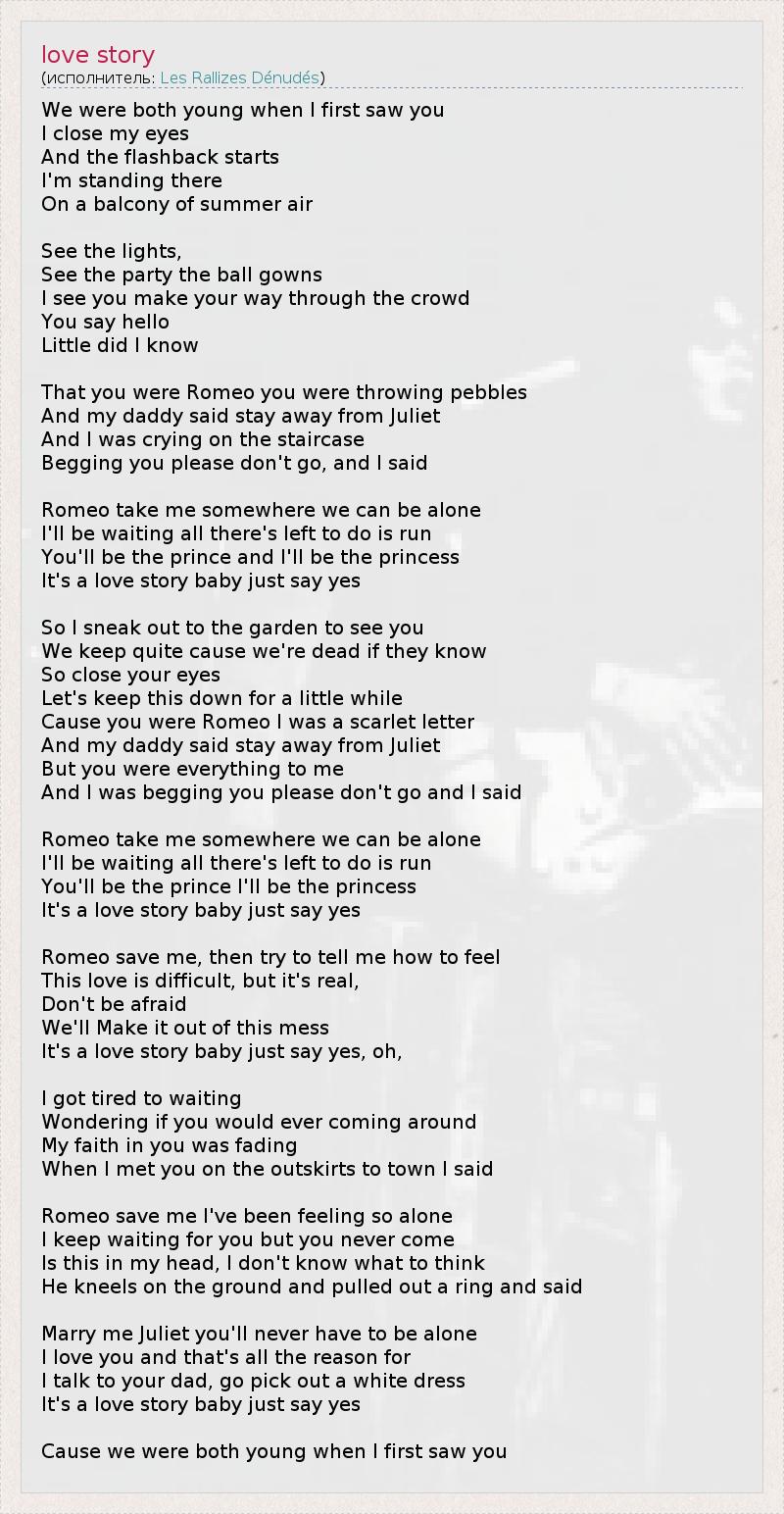 А как ты думаешь, о чем песня "love story" ?