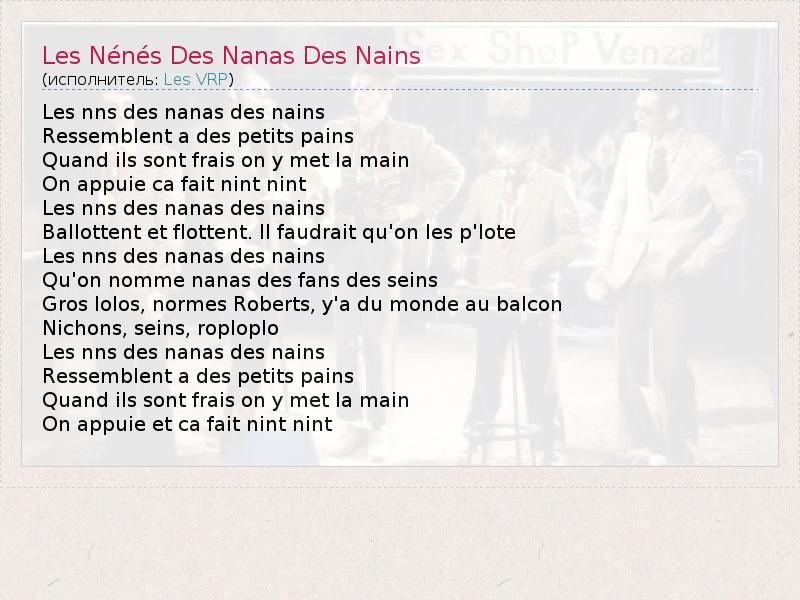 А как ты думаешь, о чем песня "Les Nénés Des Nanas Des Nains" ?