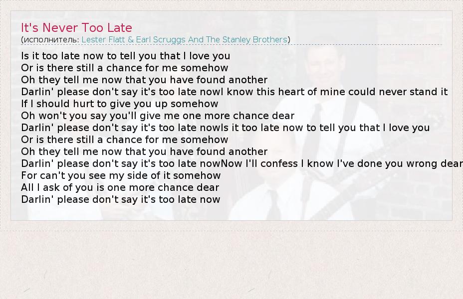 А как ты думаешь, о чем песня "It's Never Too Late" ?