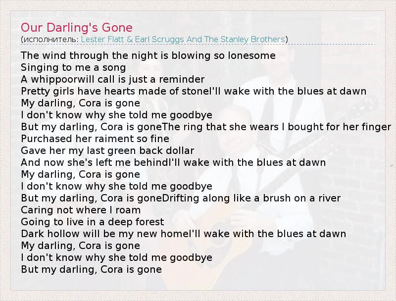А как ты думаешь, о чем песня "Our Darling's Gone" ?