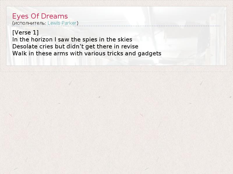 А как ты думаешь, о чем песня "Eyes Of Dreams" ?