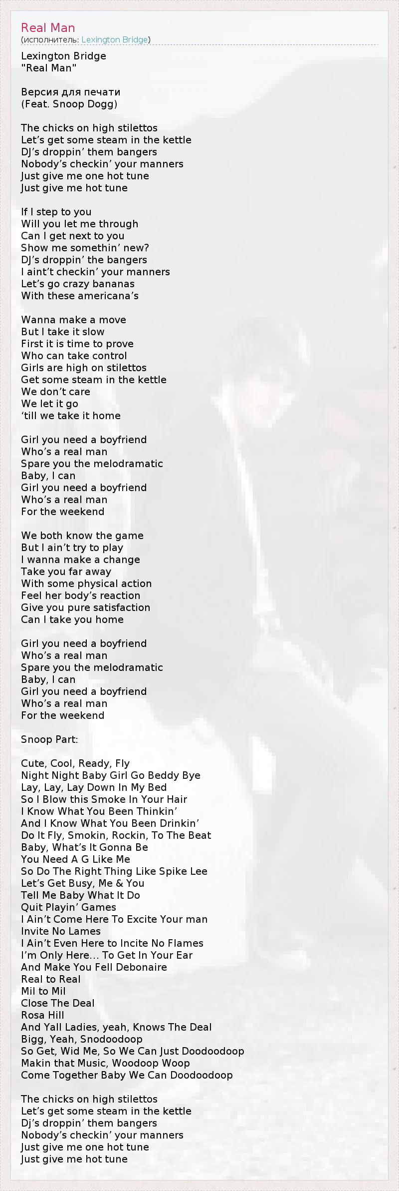 Это интересно:Lexington Bridge were an British - Dutch - American boyband. The group is currently composed of Rob from the USA, Nye from the UK, Ephraim Beks from the Netherlands, Dax O'Callaghan from the UK and Jerome from the UK. Lexington Bridge are known for experimenting with different instruments, sounds, and vocal styles and also they use different genres such as Hip hop, R&B and Dance music into a sexy and sweeping sound. They came to fame after their first single "Kick Back" which was released early 2007. Their first album The Vibe was released in 23 November 2007 including three hit singles: "Kick Back", "Real Man" and "Everything I Am", in this album they... продолжение