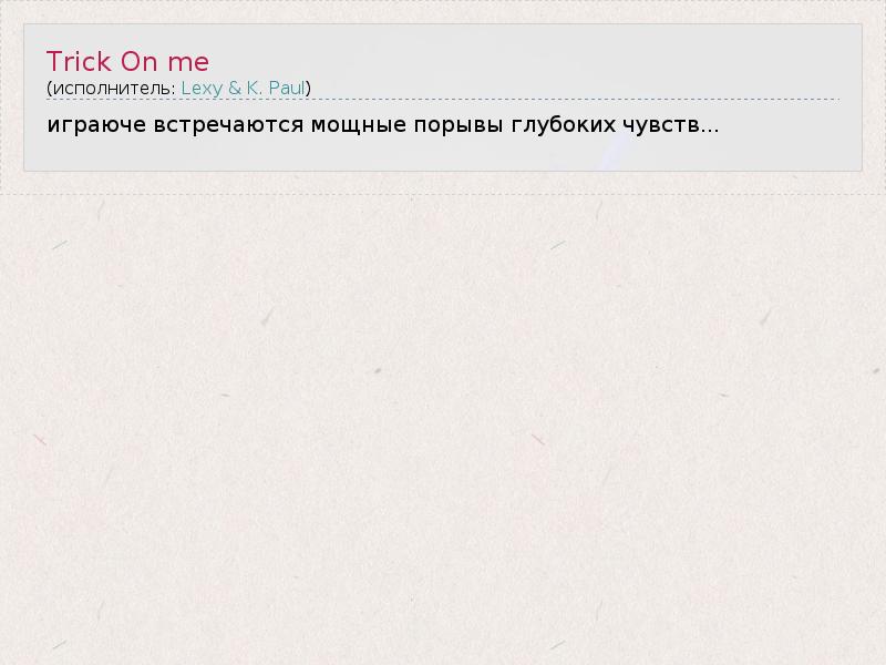 А как ты думаешь, о чем песня "Trick On me" ?
