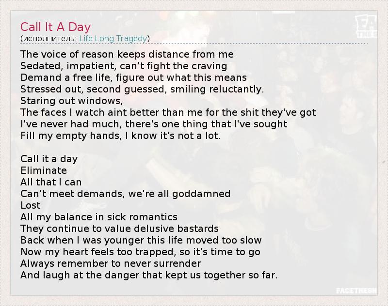 А как ты думаешь, о чем песня "Call It A Day" ?
