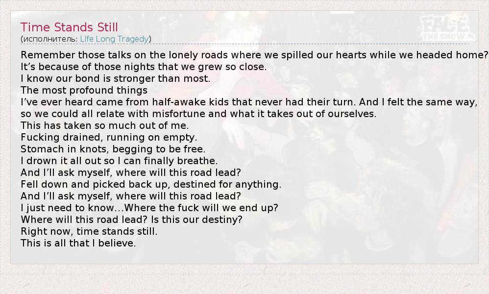 А как ты думаешь, о чем песня "Time Stands Still" ?