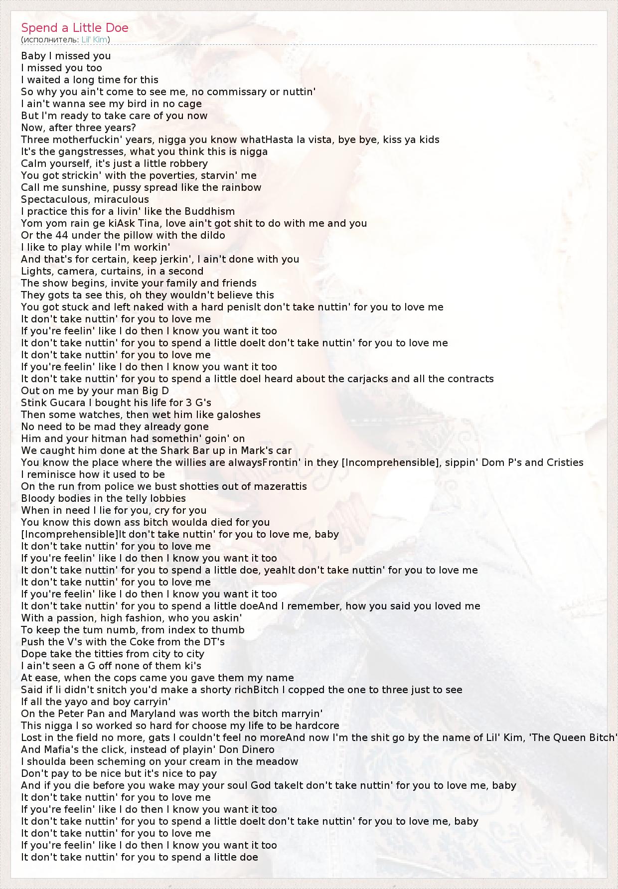It don't take nuttin' for you to spend a little doeAnd I remember, how you said you loved me