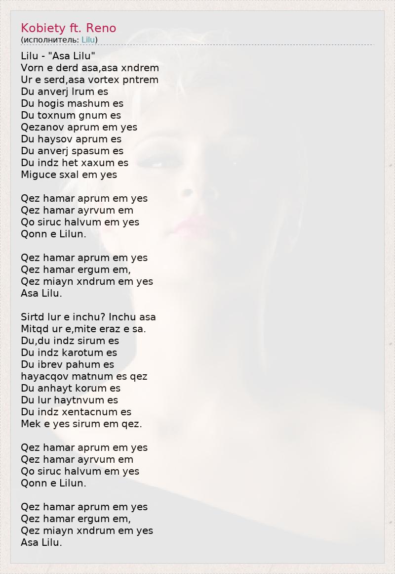 А как ты думаешь, о чем песня "Kobiety ft. Reno" ?