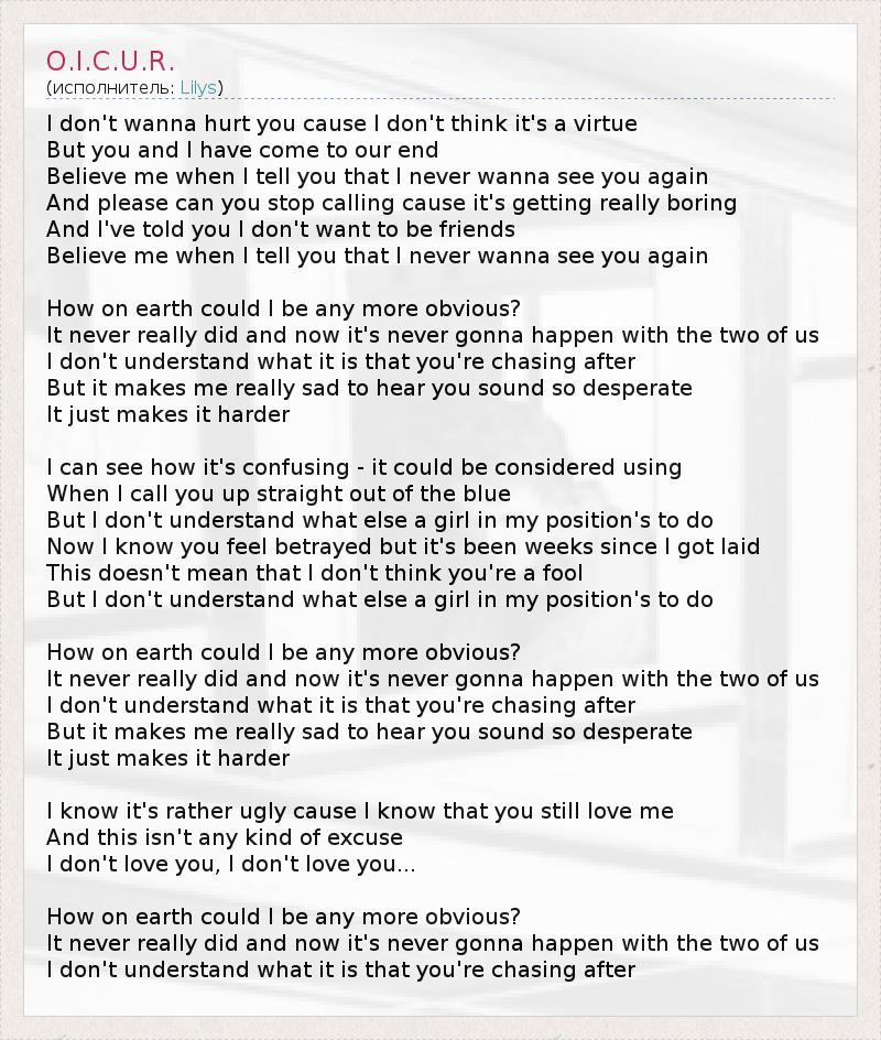 А как ты думаешь, о чем песня "O.I.C.U.R." ?