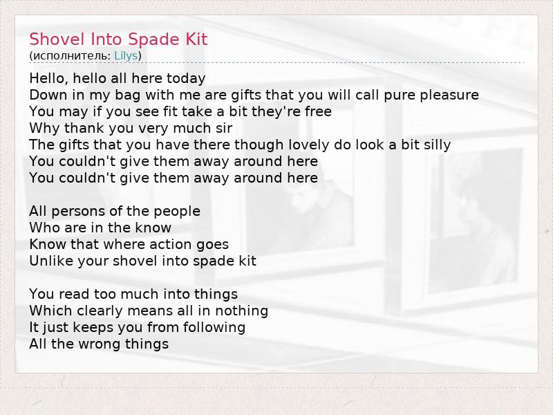 А как ты думаешь, о чем песня "Shovel Into Spade Kit" ?