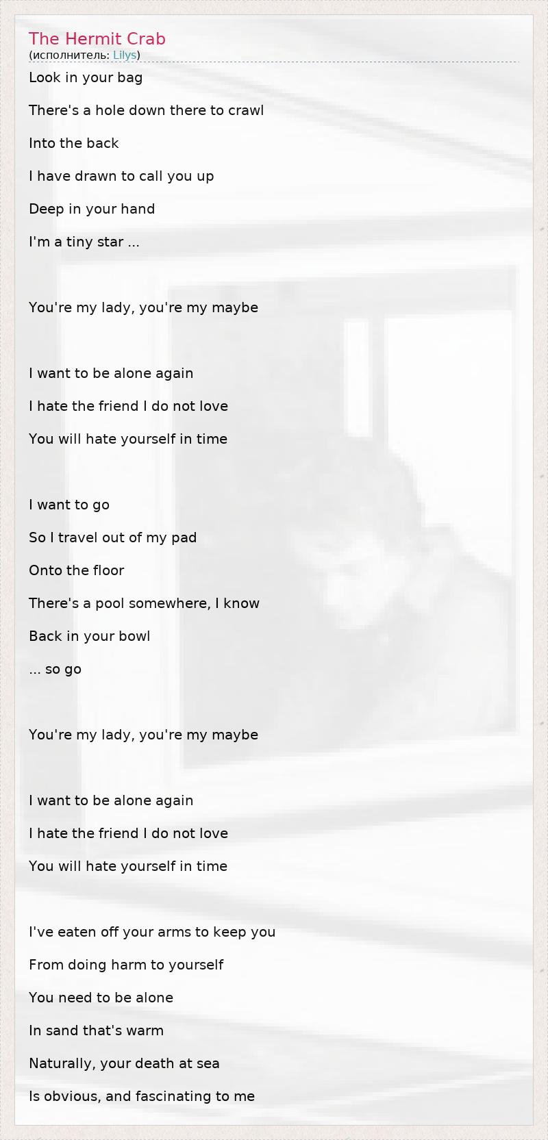 А как ты думаешь, о чем песня "The Hermit Crab" ?