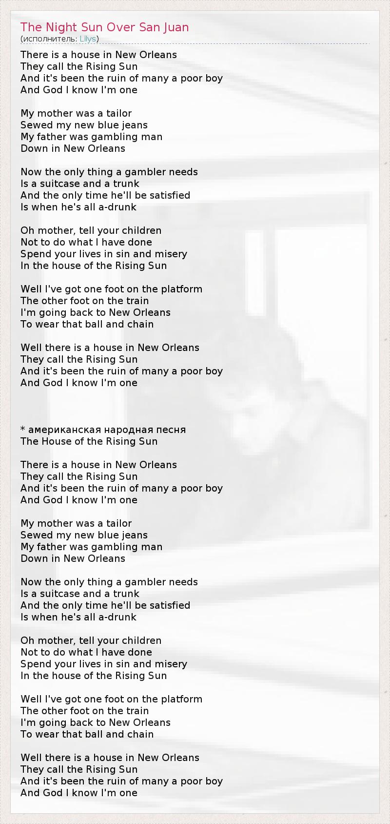 В том Доме, где Солнце Встает.