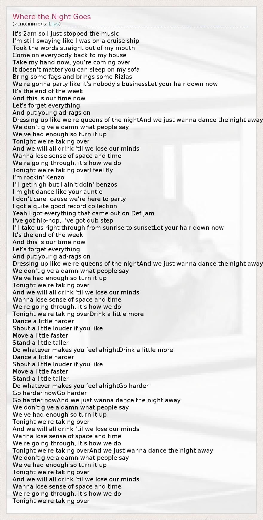 А как ты думаешь, о чем песня "Where the Night Goes" ?