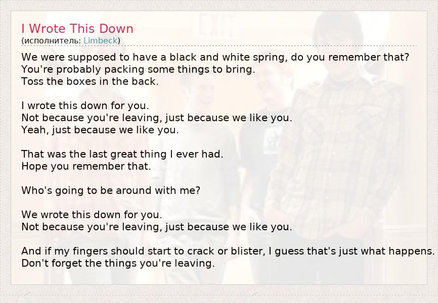 А как ты думаешь, о чем песня "I Wrote This Down" ?