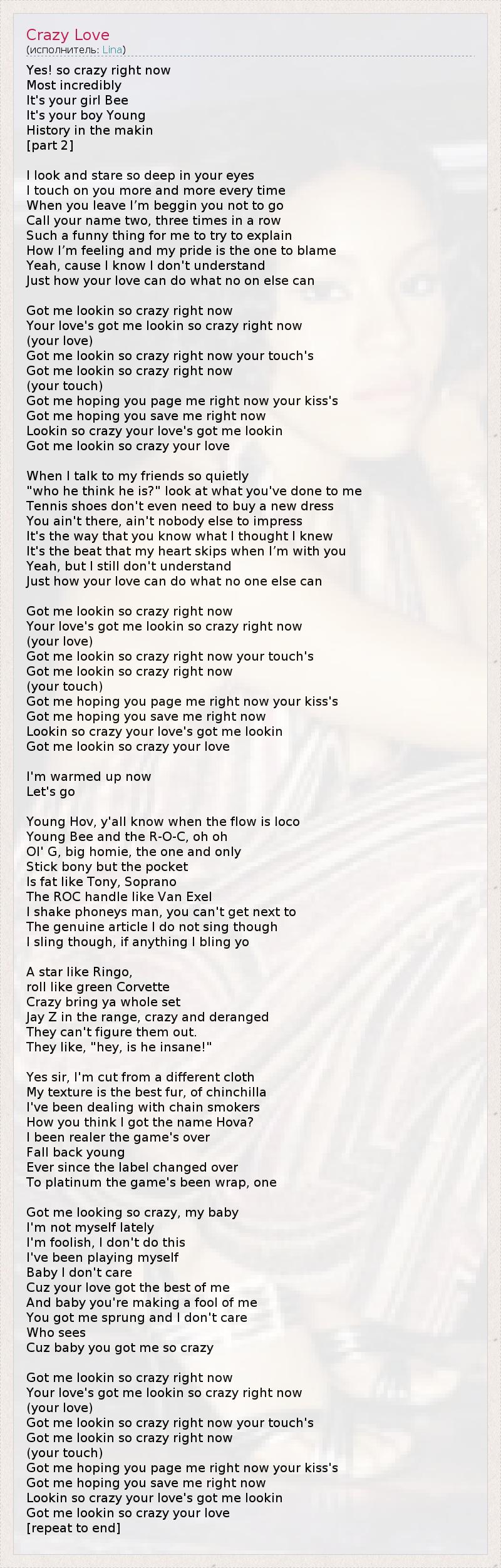 А как ты думаешь, о чем песня "Crazy Love" ?