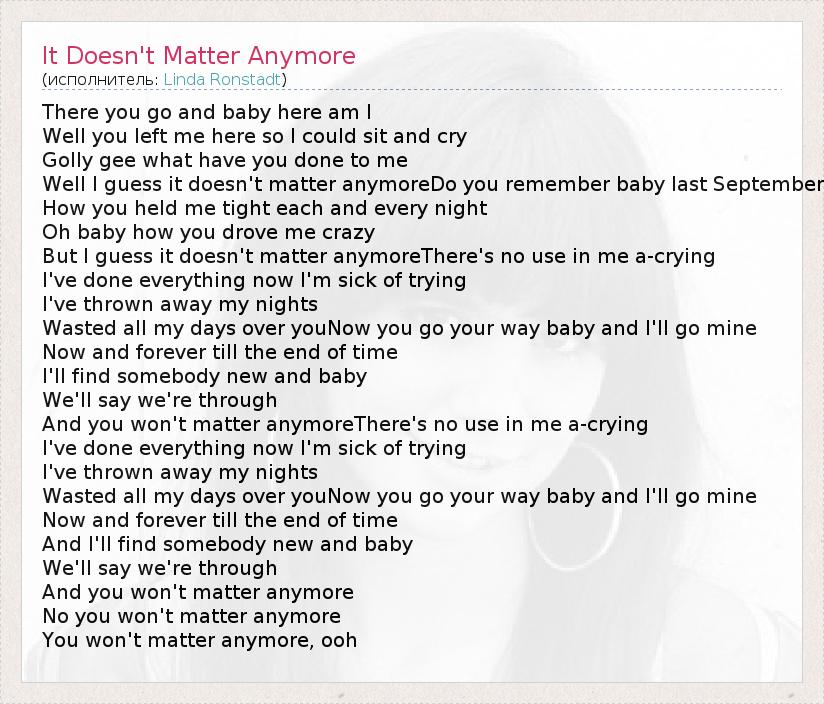 ГлавнаяИсполнителиLinda RonstadtIt Doesn't Matter Anymore