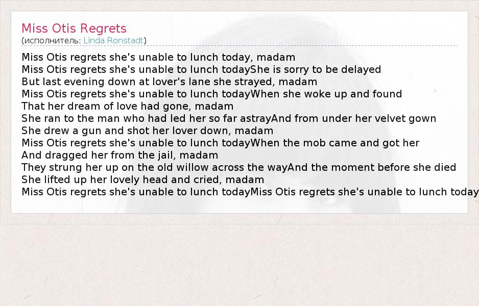 А как ты думаешь, о чем песня "Miss Otis Regrets" ?