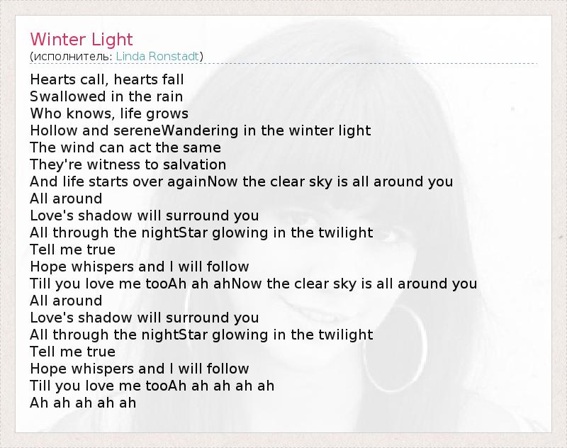 А как ты думаешь, о чем песня "Winter Light" ?