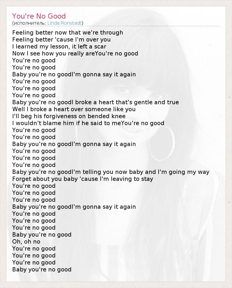 Baby you're no goodI'm telling you now baby and I'm going my way