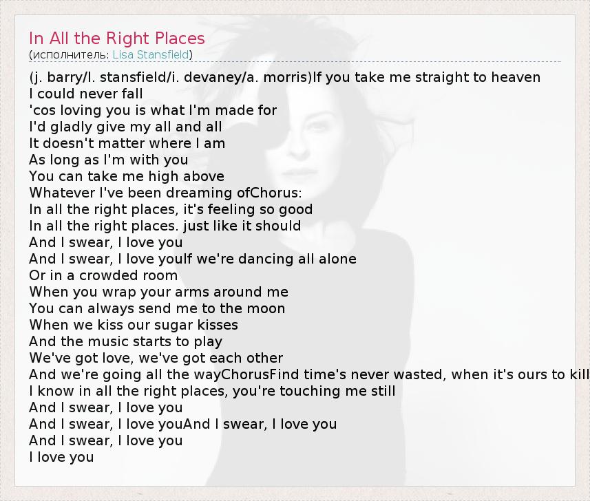 А как ты думаешь, о чем песня "In All the Right Places" ?