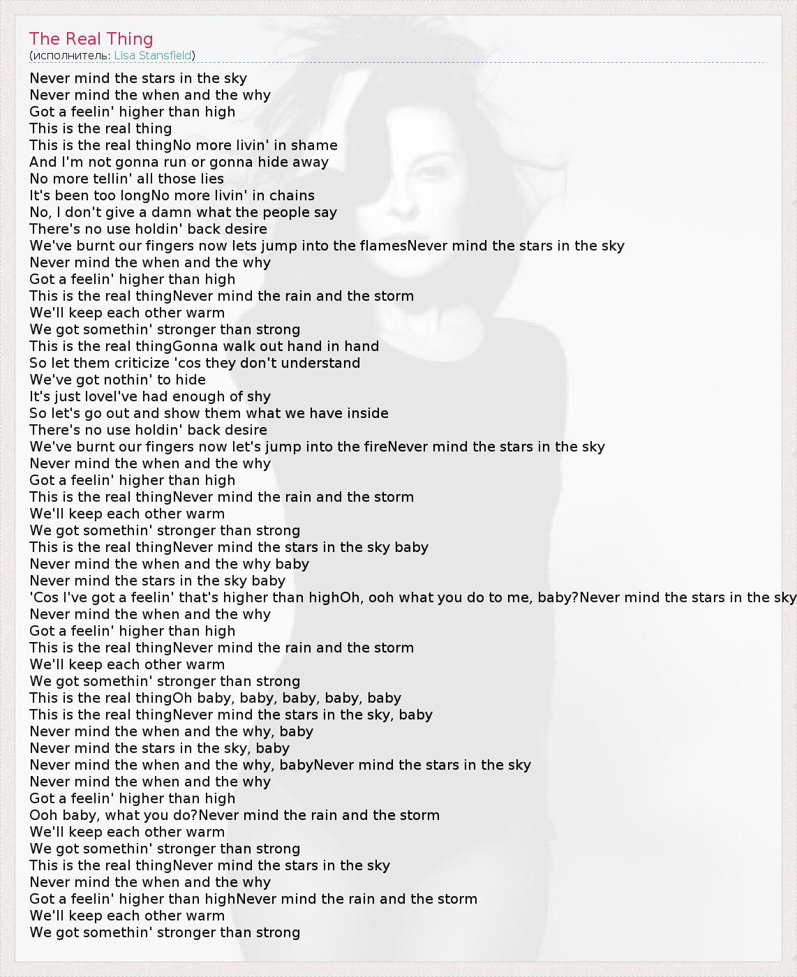 А как ты думаешь, о чем песня "The Real Thing" ?