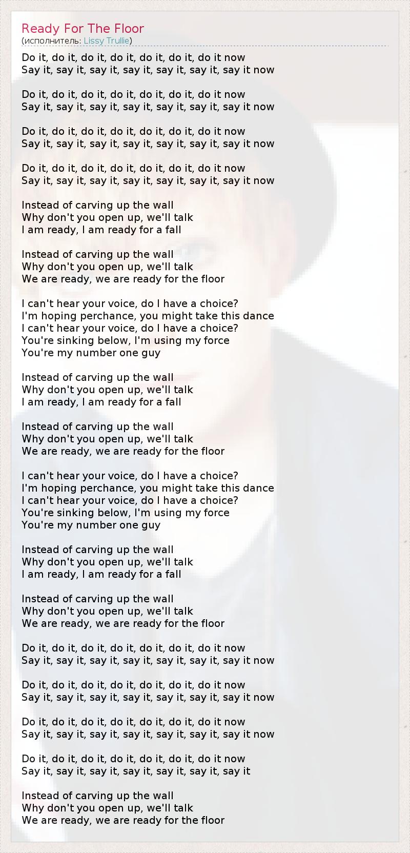 А как ты думаешь, о чем песня "Ready For The Floor" ?
